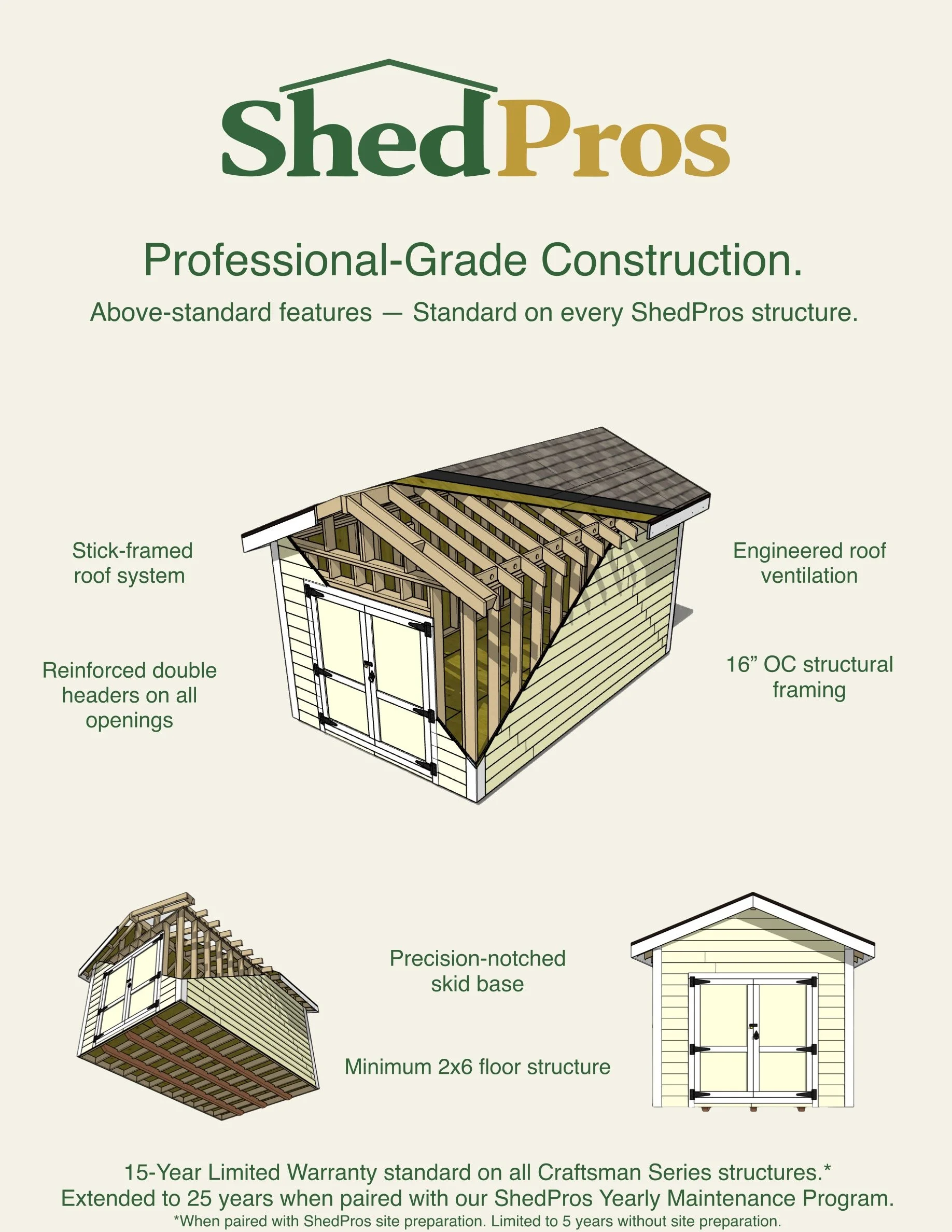 ShedPros offers industry leading limited warranty protection.
